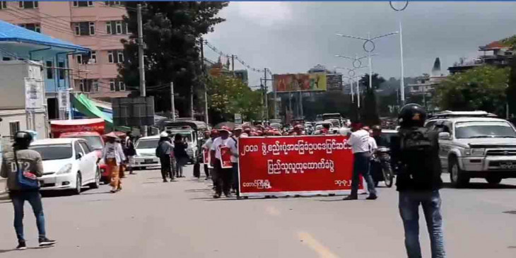 ၂၀၀၈ ဖြဲ႔စည္းပံု အေျခခံဥပေဒ ျပင္ဆင္ေရးကို ေထာက္ခံတ့ဲအေနနဲ႔ ရွမ္းျပည္နယ္ ေတာင္ႀကီးၿမိဳ႕မွာ ေဒသခံေတြက ဇူလိုင္ ၁၇ ရက္ေန႔က ၿငိမ္းခ်မ္းစြာ စီတန္းလွည့္လည္ ဆႏၵထုတ္ေဖာ္ၾကပါတယ္။