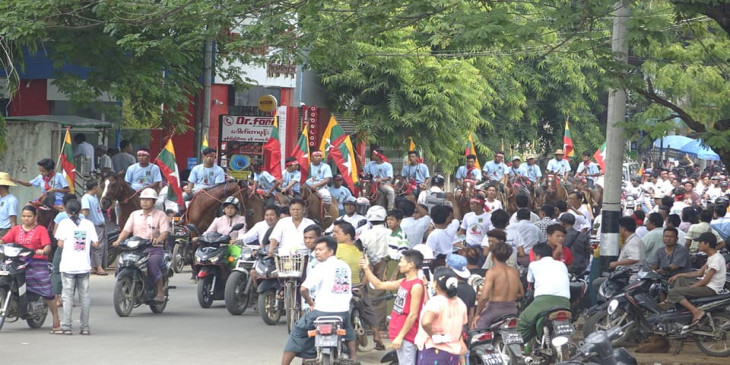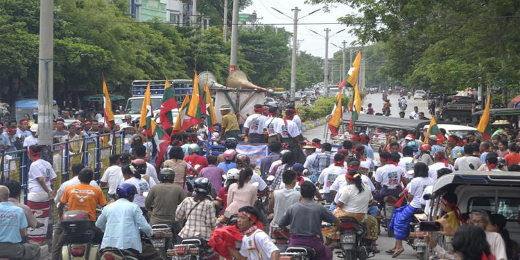 လူအင္အား ေသာင္းနဲ႔ခ်ီ ပါဝင္သည့္ ဖဲြ႔စည္းပံုျပင္ဆင္ေရး ေထာက္ခံဆႏၵျပပြဲ မံုရြာတြင္ ျပဳလုပ္