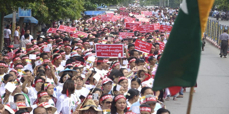 လူအင္အား ေသာင္းနဲ႔ခ်ီ ပါဝင္သည့္ ဖဲြ႔စည္းပံုျပင္ဆင္ေရး ေထာက္ခံဆႏၵျပပြဲ မံုရြာတြင္ ျပဳလုပ္