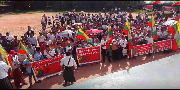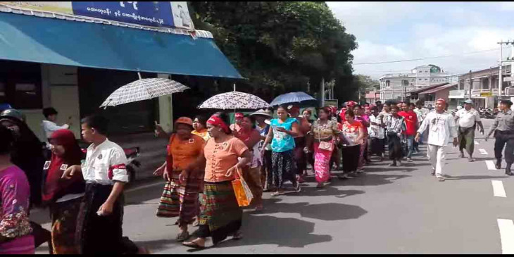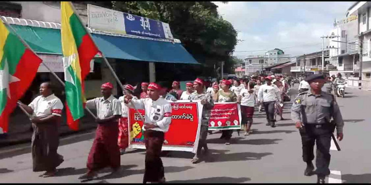 ေထာက္ခံပြဲကို ေက်ာက္တိုင္ကြင္းမွစုေဝးၾကၿပီး ေက်ာက္တိုင္ကြင္းမွ ေႂကြးေၾကာ္သံေတြ ေႂကြးေၾကာ္ကာ ၿမိဳ႕တြင္းကို လွည့္လည္ခဲ့ၾကပါတယ္။