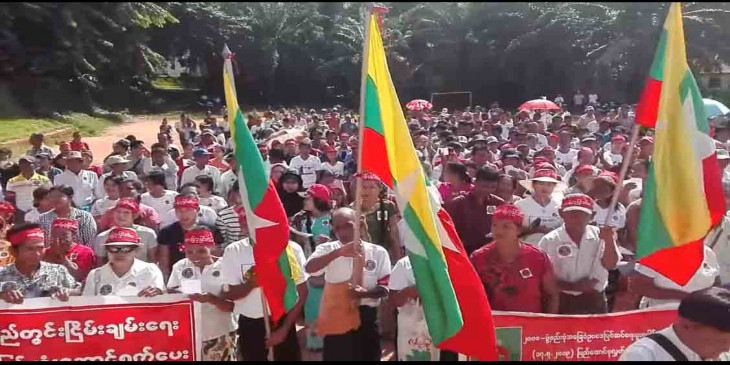 ေထာက္ခံပြဲကို ေက်ာက္တိုင္ကြင္းမွစုေဝးၾကၿပီး ေက်ာက္တိုင္ကြင္းမွ ေႂကြးေၾကာ္သံေတြ ေႂကြးေၾကာ္ကာ ၿမိဳ႕တြင္းကို လွည့္လည္ခဲ့ၾကပါတယ္။