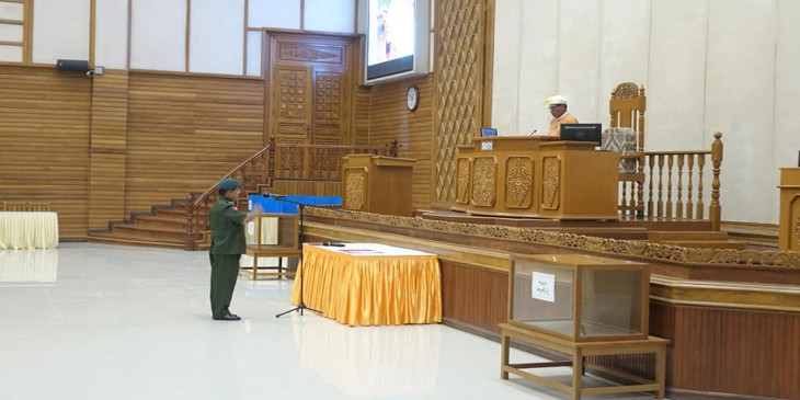 စစ္ကိုင္းတိုင္း ဝန္ႀကီးသစ္ႏွင့္ တပ္မေတာ္သားကိုယ္စားလွယ္ ၁ ဦး က်မ္းသစၥာက်ိန္ဆို