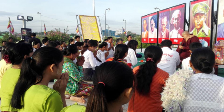 ဗိုလ္ခ်ဳပ္ေအာင္ဆန္းအပါအ၀င္ အာဇာနည္ ၉ ဦးတို႔ကို ရည္စူးၿပီး သံဃာေတာ္အပါး ၅၀၀ ေက်ာ္ကို ဆြမ္းေလာင္းဆြမ္းကပ္ၿပီး အမ်ွေပးေဝခဲ့ၾကပါတယ္။