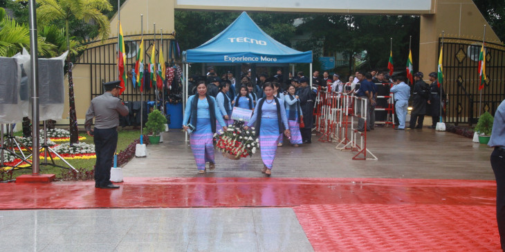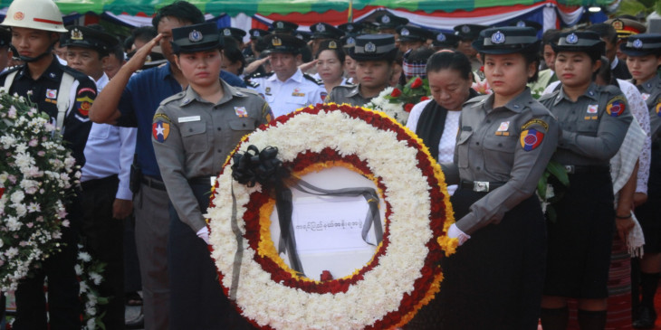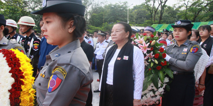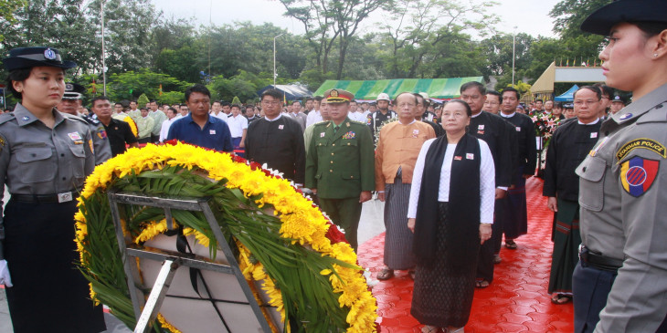 မနက္ ၁၀ နာရီ ၃၇ မိနစ္မွာ က်ဆုံးေလၿပီးတ့ဲ အာဇာနည္ေခါင္းေဆာင္ႀကီးေတြကို ၀မ္းနည္ျခင္းအထိမ္းအမွတ္ ဥၾသဆြဲရာ ၂ မိနစ္ၿငိမ္သက္ၿပီး လြမ္းသူ႔ပန္းေခြခ် အေလးျပဳခဲ့ၾကပါတယ္။
