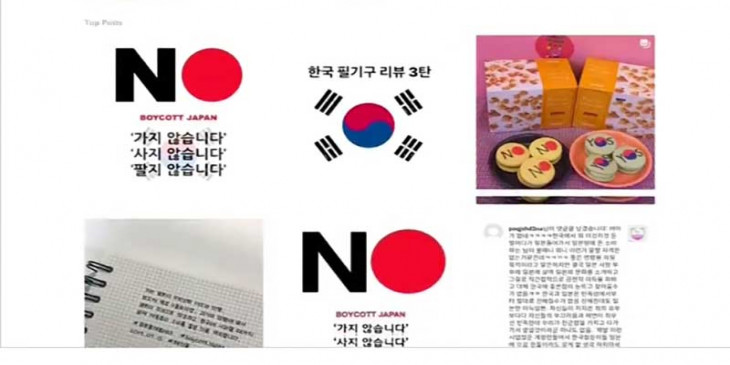 ဂ်ပန္အစိုးရက ေတာင္ကိုရီးယားဆီ တင္ပို႔တဲ့ ပို႔ကုန္ေတြအေပၚ ထိန္းခ်ဳပ္မႈေတြ သတ္မွတ္လိုက္ၿပီးေနာက္ ေတာင္ကိုရီးယား စားသံုးသူေတြဟာ ဂ်ပန္ထုတ္ကုန္နဲ႔ ၀န္ေဆာင္မႈေတြအေပၚ သပိတ္ေမွာက္ၾကပါတယ္။