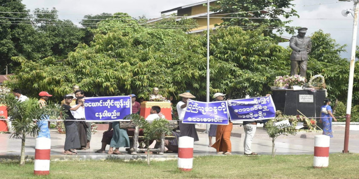 မီတာခတိုးျမွင့္ ေကာက္ခံမႈအေပၚ ေက်နပ္မႈမရွိေၾကာင္း ကန္႔ကြက္ဆႏၵျပပြဲကို ပဲခူးတိုင္း ျဖဴးျမိဳ႕ရွိ ဗိုလ္ခ်ဳပ္ေအာင္ဆန္းေၾကးရုပ္ ရင္ျပင္မွာ ဒီေန႔ မနက္ ၉ နာရီက ျပဳလုပ္ခဲ့ပါတယ္။
