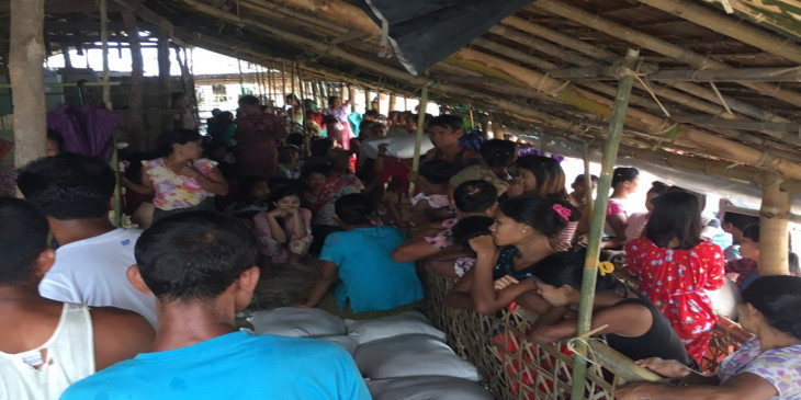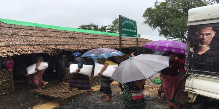 မၾကာေသးခင္က မိုးအဆက္မျပတ္ရြာသြန္းခဲ့တာေၾကာင့္ ရခိုင္ကစစ္ေဘးေရွာင္ ေနအိမ္ေတြ ေရနစ္ျမဳပ္ခဲ့သလို အဲ့ဒီအထဲမွာ စစ္ေဘးေရွာင္ ၂၈၀၀ ရွိတဲ့ တိမ္ညိဳစစ္ေဘးေရွာင္ စခန္းဆိုရင္လည္း ေရနစ္ျမဳပ္ခဲ့ရျပီး စစ္ေဘးေရွာင္ေတြဟာ ဘုန္းေတာ္ႀကီးေက်ာင္းမွာ ယာယီ ခိုလႈံခဲ့ရပါတယ္။