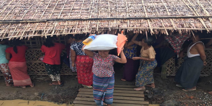 ရခိုင္ျပည္နယ္ ေျမာက္ဦးၿမိဳ႕နယ္ ရန္ကုန္-စစ္ေတြ ကားလမ္းနားေဘးမွာရွိတဲ့ တိမ္ညိဳ စစ္ေဘးေရွာင္ ၂၈၀၀ ေက်ာ္အတြက္ သိန္း ၁၀၀ ေက်ာ္ဖိုး ဆန္ရိကၡာေတြကို ေဒၚခင္ၾကည္ ေဖာင္ေဒးရွင္းက ဇူလိုင္ ၂၄ ရက္ေန႔က သြားေရာက္လႉဒါန္းခဲ့ၾကပါတယ္။