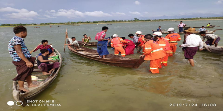 “သူတို႔ကလည္း စက္ေလွ မစီးဖူးေတာ့ ေလွနည္းနည္းလူးတဲ့အခ်ိန္မွာ ေရကလည္း ဝင္ေနေတာ့ လန္ၿပီးခုန္ခ်ၾကတယ္၊ အဲ့ခ်ိန္မွာ တေယာက္နဲ႔တေယာက္ လွုပ္ရွားမွုျဖစ္ၿပီးေတာ့ ေလွက ေမွာက္သြားတာပါ” လို႔ ေညာင္ကန္ေက်းရြာအုပ္စု အုပ္ခ်ဳပ္ေရးမွႉး ဦးေမာင္ေမာင္က ဆိုပါတယ္။