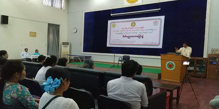 မႏၲေလးၿမိဳ႕ ကုတင္ ၅၅၀ ဆံ့ ကေလးေဆးရံုႀကီး၊ New Hope Association နဲ႔ ပုဂၢလိက ေက်ာင္းတခုျဖစ္တဲ့ SKC Smart Kids College တို႔ ပူးေပါင္းကာ ဒီကေလးငယ္ေတြရဲ႕ စိတ္ပိုင္းဆိုင္ရာ လံုျခံဳမႈနဲ႔ ဘဝျဖစ္တည္မႈကို လက္ခံနားလည္ေပးႏိုင္ဖို႔ ကေလးစိတ္ပညာ ေဟာေျပာပြဲကို ဇူလိုင္ ၂၈ ရက္ေန႔က ကုတင္ ၅၅၀ ဆံ့ ကေလးေဆးရံုႀကီးမွာ ျပဳလုပ္ခဲ့ပါတယ္။