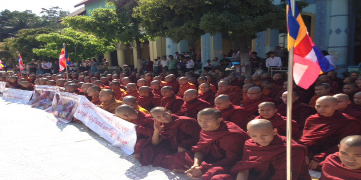ရန္ကုန္မွာ လက္ပန္းေတာင္းေတာင္နဲ့ ပတ္သက္လို့ ဆနၵျပတဲ့ တက္ၾကြလႈပ္႐ွားသူေတြ၊ ေက်ာင္းသားေခါင္းေဆာင္ေတြကို ဖမ္းဆီးထားျပီး တရားစြဲဆုိတာမွာ ပုဒ္မ ၂ ခု၊ တခုက ပုဒ္မ ၁၈ ခြင့္ျပုခ်က္မရဘဲ စီတန္းလွည့္လွည္မႈနဲ့ ေနာက္တခ်က္က နုိင္ငံေတာ္အၾကည္ညိုပ်က္ေစမႈ၊ နုိင္ငံေတာ္ဂုဏ္သိကၡာက်ေစတယ္ဆိုျပီး အဲေတာ့ ဒီလုိ ပုဒ္မေတြနဲ့ ပတ္သက္လို့ေရာ အထက္ျမန္မာျပည္သံဃာေတာ္မ်ားအေနနဲ့ အ႐ွိန္ျမွင့္မယ္ဆိုေတာ့ ဘယ္လုိျပင္ဆင္ထားပါလဲဘုရား။