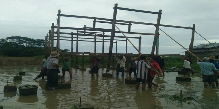 အဖျောက်တွင် ကမ်းပါပြိုကျ၍ လူနေအိမ်များ အရေးပေါ်ပြောင်းရွှေ့