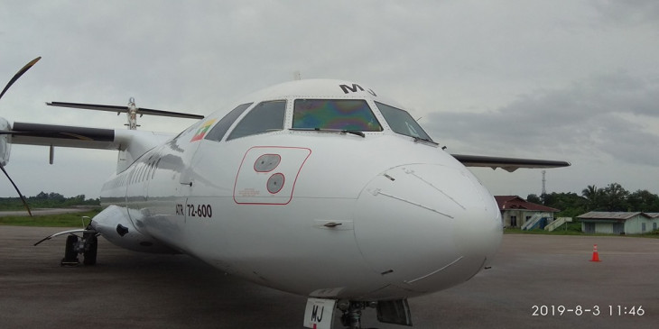 မြိတ်လေဆိပ်သို့ ဆင်းသက်သည့် လေယာဉ်တစီး လေကာမှန်အက်ကွဲ၊ ခရီးစဉ်ယာယီ ရပ်ဆိုင်း