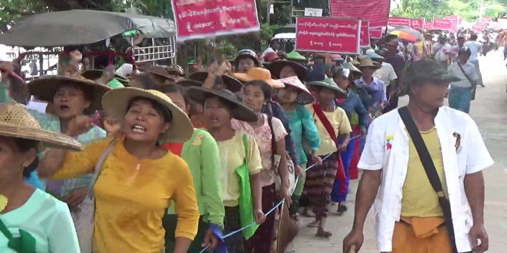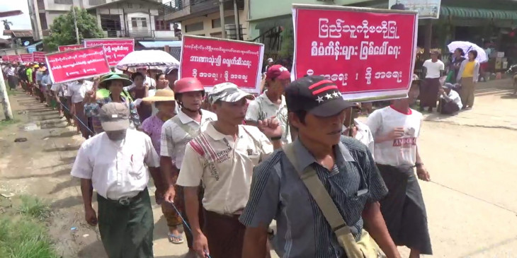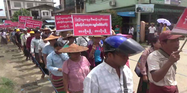 နမ့္ပန္ငါးေရအားလွ်ပ္စစ္စီမံကိန္း ဖ်က္သိမ္းေပးရန္ ေဒသခံမ်ား ဆႏၵျပ DVB စစ္ကိုင္းတိုင္း၊ ခႏၲီးခ႐ိုင္ ဟုမၼလင္းၿမိဳ႕နယ္ နမ့္ပန္ေရအားလွ်ပ္စစ္စီမံကိန္းအား ဖ်က္သိမ္းေပးဖို႔ သဝန္တိုက္နယ္အတြင္းမွာရွိတဲ့ ေက်း႐ြာေပါင္း ၁၂ ႐ြာမွ ေဒသခံျပည္သူ (၁၀၀၀) ေလာက္ ဩဂုတ္ ၄ ရက္ေန႔က ဆႏၵထုတ္ေဖာ္ခဲ့ၾကပါတယ္။ ဆႏၵထုတ္ေဖာ္ပြဲကို ဗိုလ္ခ်ဳပ္ေၾကး႐ုပ္ကေနစတင္ကာ ဆုေတာင္းျပည့္ဘုရားလမ္း ကမ္းနားလမ္း တာ႐ိုးလမ္း ခိုပဲဝၿမိဳ႕ပတ္လမ္းမွတဆင့္ ျပည္သူ႔ေဆး႐ုံလမ္းေၾကာင္းအတိုင္း လမ္းေလွ်ာက္ခ်ီတက္ကာ ဗိုလ္ခ်ဳပ္ေၾကး႐ုပ္မွာပဲ အဆုံးသတ္ခဲ့ပါတယ္။ နမ့္ပန္ငါးေရအားလွ်ပ္စစ္စီမံကိန္း ဖ်က္သိမ္းေရး၊ ျပည္သူကိုဗဟိုျပဳစီမံကိန္းမ်ား ျဖစ္ေပၚေရး၊ ျပည္သူ႔ဆႏၵႏွင့္မကိုက္ညီေသာ စီမံကိန္း ရပ္တန႔္ေပးေရး၊ ျပည္သူ႔ဆႏၵႏွင့္ဆန႔္က်င္ေသာ နမ့္ပန္ငါး ေရအားလွ်ပ္စစ္စီမံကိန္း အလိုမရွိ၊ သမိုင္းဝင္ နားသက်ိဳက္ေစတီပုထိုးမ်ား မပ်က္စီးေရး၊ သဝန္တိုက္နယ္ရွိ ေတာင္သူလယ္သမားမ်ား၏ဘဝကို အာဏာသုံး၍ မဖ်က္ဆီးေရး စတဲ့ေႂကြးေၾကာ္သံေတြနဲ႔ ဆႏၵထုတ္ေဖာ္ခဲ့ၾကတာပါ။ ဆႏၵျပပြဲကို ဦးေဆာင္သူ သဝန္ထြက္ဝေက်း႐ြာေန ဦးေမာင္ထြားက “နမ့္ပန္ငါးေခ်ာင္ ေရအားလွ်ပ္စစ္စီမံကိန္းကို ဖ်က္သိမ္းဖို႔အေရး ၂၀၁၆ ခုႏွစ္ကစတင္ကာ ယေန႔အခ်ိန္ထိ ၅ ႀကိမ္တိုင္တိုင္ သက္ဆိုင္ရာဌာနေတြကို ကန႔္ကြက္စာေတြ တင္ခဲ့ေသာ္လည္း သူတို႔က ရပ္တန႔္ျခင္းမရွိဘဲ ဆက္လက္လုပ္ကိုင္ေနတာေၾကာင့္ရယ္ အခုလည္း ကားလမ္းေတြ ေဖာက္ၿပီး လုပ္ကိုင္ေနလို႔ စိုးရိမ္စိတ္ႀကီးစြာနဲ႔ ဆႏၵထုတ္ေဖာ္ရျခင္းျဖစ္တယ္။ အထက္ခ်င္းတြင္းမွာရွိတဲ့ တဇုန္း႐ြာသူ႐ြာသားမ်ားကို ေ႐ႊျပည္ေအးၿမိဳ႕ကို အတင္းအဓမၼ ေျပာင္းေ႐ႊ႕ရသလို ျဖစ္မွာကိုလည္း စိုးရိမ္တယ္”လို႔ ေျပာပါတယ္။ သဝန္ထြက္ဝေက်း႐ြာေန ေဒၚေထြးပိုက “က်မတို႔ နမ့္ပန္ငါးေခ်ာင္း ေရအားလွ်ပ္စစ္နဲ႔ ပတ္သက္ၿပီး ျပည္သူလူထုေတြအေပၚမွာ ဘာမွ တိုင္ပင္ေဆြးေႏြးျခင္းကို မရွိခဲ့ပါဘူး။ ၂၀၁၉ ခုႏွစ္ ၾသဂုတ္ ၄ ရက္ေန႔မွာ ျပည္သူေတြဆႏၵထုတ္ေဖာ္မယ္ဆိုမွ ရွမ္းဝန္ႀကီးႏွင့္ အဖြဲ႕ဝင္မ်ားက ၾသဂုတ္ ၃ ရက္ေန႔မွာလာၿပီး ျပည္သူေတြနဲ႔ ေတြ႕ဆုံတာပဲရွိပါတယ္ရွင့္။ နမ့္ပန္ေခ်ာင္းေရအားလွ်ပ္စစ္ကို ဆက္လက္ၿပီးလုပ္မယ္ဆိုရင္ က်မတို႔ျပည္သူလူထုေတြကလည္း အခါအားေလ်ာ္စြာ ဆႏၵထုတ္ေဖာ္သြားမယ္။ ႏိုင္ငံေတာ္သမၼတႀကီးႏွင့္တကြ သက္ဆိုင္ရာဌာနေတြ ကိုလည္း ဒီေရအားလွ်ပ္စစ္ကို ရပ္တန႔္ေပးဖို႔ ေတာင္းဆိုခ်င္ပါတယ္” လို႔ ေျပာပါတယ္။ “က်ေနာ္တို႔ကို ရွင္းလင္းခ်က္ဘာမွ လာမေပးဘူး။ သူတို႔လုပ္ခ်င္သလို လုပ္ေနတာ။ က်ေနာ္တို႔က လက္မခံႏိုင္လို႔ ဆႏၵေဖာ္ထုတ္တာျဖစ္တယ္။ မေန႔ကလည္း ဝန္ႀကီးေတြလာတယ္ ရွင္းလင္းခ်က္လည္း ဘာမွမေပးႏိုင