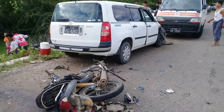 မိတၳီလာတြင္ ပ႐ိုေဘာက္ကားႏွင့္ ဆိုင္ကယ္ ၂ စီးတိုက္မိ၊ ၂ ဦး ေသဆုံး