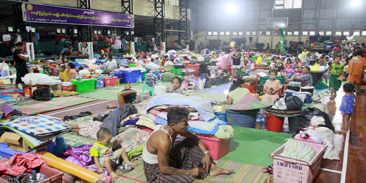 ၾသဂုတ္လဆန္းပိုင္းက စတင္ၿပီး မိုးသည္းထန္စြာ ႐ြာသြန္းမႈနဲ႔ သံလြင္ျမစ္၊ လႈိင္းဘြဲ႕ေခ်ာင္း၊ ေဟာင္သေရာျမစ္၊ ေသာင္းရင္းျမစ္ေရလွ်ံမႈေတြ ျဖစ္ေပၚခဲ့တဲ့အတြက္ ေရေဘးသင့္ျပည္သူေတြဟာ ယာယီဖြင့္လွစ္ထားတဲ့ ကယ္ဆယ္ေရစခန္းေတြမွာ ၾသဂုတ္ ၆ ရက္ေန႔မွ စတင္ၿပီး ခိုလႈံေနရတာပါ။