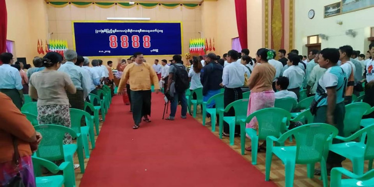 သြဂုတ်လ ၈ ရက်နေ့ မနက်ပိုင်းက ပုသိမ်မြို့တော်ခန်းမမှာ ကျင်းပတဲ့ ၈ လေးလုံး အရေးတော်ပုံ အခမ်းအနားကိုလည်း ဧရာဝတီတိုင်းဒေသကြီးဝန်ကြီးချုပ် ဦးလှမိုးအောင်နဲ့ အစိုးရအဖွဲ့ဝန်ကြီးတွေ တက်ရောက်ခဲ့ပါတယ်။