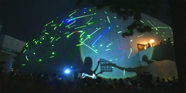 ဟောင်ကောင် အာကာသပြတိုက်နားမှာ သြဂုတ် ၇ ရက် ညက ရာချီတဲ့ ဆန္ဒပြသူတွေ စုဝေးပြီး လေဆာပွိုင့်တာထိုးကာ ဆန္ဒပြခဲ့ကြပါတယ်။