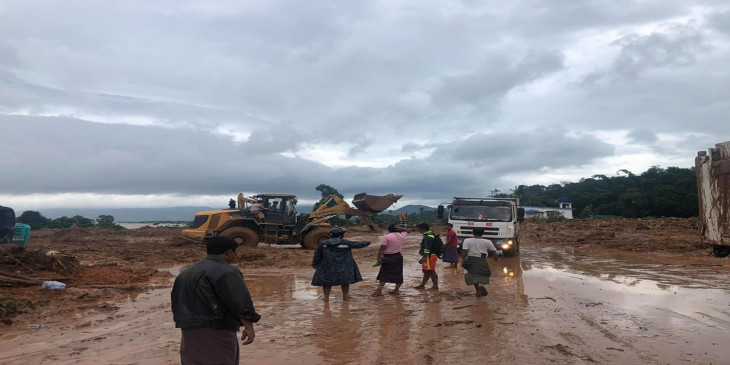မွန်ပြည်နယ်ဝန်ကြီးချုပ် ဒေါက်တာအေးဇံနဲ့ တာဝန်ရှိသူတွေလည်း တောင်ပြိုကျမှုကြောင့် ထိခိုက်ဒဏ်ရာရရှိခဲ့တဲ့ လူနာတွေကို မနေ့ညနေပိုင်းက သွားရောက် အားပေးစကားပြောကြားခဲ့သလို တောင်မြေတွေကို မြေတူးစက်(Backhoe/ Dozer) တွေနဲ့ ဖယ်ရှားရှင်းလင်းနေမှုအခြေအနေကို သွားရောက်ကြည့်ရှုခဲ့တယ်လို့ ဆိုပါတယ်။
