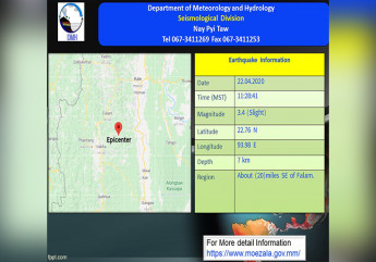 ရှမ်းပြည်နယ်တောင်ပိုင်း လွိုင်လင်ခရိုင် နမ့်စန်မြို့နယ်မှာ ဒီနေ့မနက်အစောပိုင်းက မြေငလျင်တခု လှုပ်ခတ်သွားတယ်လို့ မိုးဇလက ထုတ်ပြန်ပါတယ်။