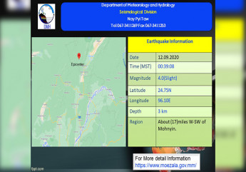 Zawgyi Version မိုးညႇင္းၿမိဳ႕တြင္ ေရႀကီးေရလွ်ံ၍ စာသင္ေက်ာင္းအခ်ိဳ႕ ယာယီပိတ္ထား DVB ကခ်င္ျပည္နယ္ မိုးညႇင္းၿမိဳ႕မွာ သည္းထန္စြာ႐ြာသြန္းၿပီး ေရႀကီးေရလွ်ံတာေၾကာင့္ စာသင္ေက်ာင္းအခ်ိဳ႕ ယာယီပိတ္ထားရတယ္လို႔ သိရပါတယ္။ မိုးသည္းထန္မႈေၾကာင့္ ၾသဂုတ္ ၁၀ ရက္မနက္က မိုးညႇင္းၿမိဳ႕ ေအာင္ခ်မ္းသာ၊ စိမ္းရတနာေတာင္ေျမာက္၊ ေရလည္ကြၽန္း၊ မိုးဒါးစု၊ စက္ကုန္းရပ္ကြက္တခ်ိဳ႕ ေရႀကီးေရလွ်ံျဖစ္ခဲ့ပါတယ္။ ေရႀကီးတာေၾကာင့္ နန္းခါမူလတန္းေက်ာင္းကို ပိတ္ထားရၿပီး သာစည္မူလတန္းေက်ာင္းရဲ႕ အုတ္တံတိုင္း ၿပိဳက်ပ်က္စီးခဲ့ၿပီး ေက်ာင္းပိတ္လိုက္ရပါတယ္။ “မနက္လာၾကတဲ့ေက်ာင္းသားေတြကိုေတာ့ အုပ္ထိမ္းသူလာႀကိဳရင္ထည့္ေပးပါတယ္။ ေနာက္ရက္ေတြလည္း ေက်ာင္းပိတ္ရက္နဲ႔ တိုက္ေတာ့ေကာင္းသြားတယ္” လို႔ သာစည္မူလတန္းေက်ာင္းဆရာမတဦးကေျပာပါတယ္။ ေရႀကီးေရလွ်ံေနတဲ့ ရပ္ကြက္ေတြမွာ မီးသတ္တပ္ဖြဲ႕ဝင္ေတြက ကူညီေပးၿပီး တပ္ဖြဲ႕ဝင္ေတြေတာ့ မလုံေလာက္ဘူးလို႔ မီးသတ္ဦးစီး ကိုေအာင္ဆန္းဦးကေျပာပါတယ္။ သတင္း-မုန္းမုန္းမင္း
