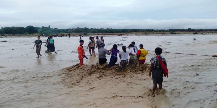 ''ချောင်းရေက ချောက်ဘက်အခြမ်းမှာ ကျတာပိုများတယ်၊ ညနေကလောက်တော့ ချောင်းရေက မများတော့ဘူး။ လူနဲ့ ဆိုင်ကယ်တွေကို ရဲတပ်ဖွဲ့နှင့် မီးသတ်တပ်ဖွဲ့တွေက တွဲပြီး ကူးပေးနေတယ်။ ချောင်းရဲ့ကြမ်းပြင်ကလည်း ချောင်းမြေသားဖြစ်တော့ ကားတွေဖြတ်သန်းဖို့ စိတ်မချရဘူး၊ အန္တရာယ်ဖြစ်မှာဆိုးလို့ ဒီညတော့ ဖြတ်သန်းခွင့် မပြုတော့ဘူး။''