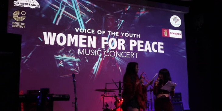 ကွဲပြားခြားနားမှုတွေကို ဂီတနဲ့ချိတ်ဆက်ထားတဲ့ Women For Peace Music Concert ကို သြဂုတ် ၁၀ ရက်နေ့ညက ရန်ကုန်မြို့ ဂျာမန်ယဉ်ကျေးမှုဌာနမှာ ပြုလုပ်ခဲ့ပါတယ်။