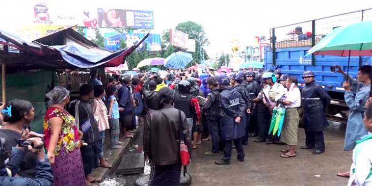 ပြည်မြို့လယ်ခေါင် ညဈေးတန်းဆိုင်ခန်းများ ဖယ်ရှားခိုင်းမှု ပဋိပက္ခဖြစ်