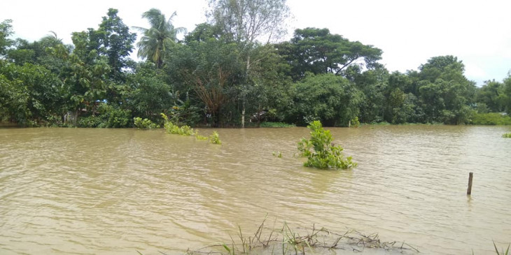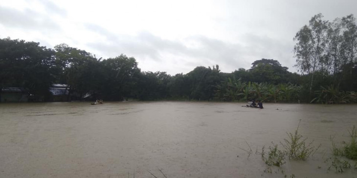 ဖလုံရွာမကျေးရွာတွင် တောင်ကျရေကြောင့် နေအိမ်နှင့်စပါးခင်းများ ရေနစ်မြုပ်