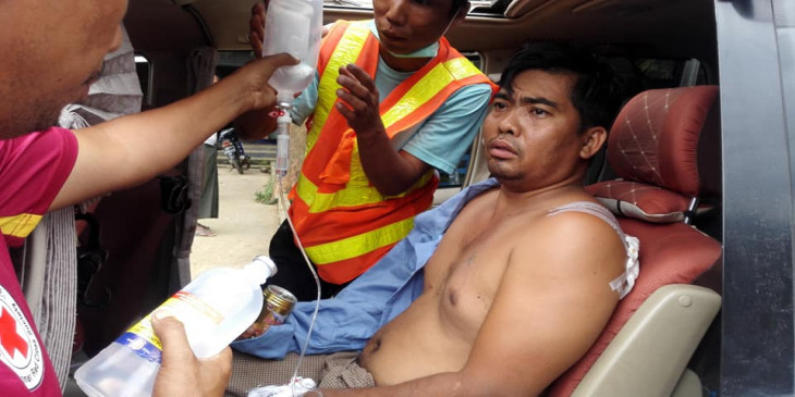 ပစ်ခိုက်တိုက်ခိုက်ခံရပြီးနောက် နောင်ချိုဆေးရုံကိုရောက်လာသည့် ဒဏ်ရာရသူများ (ဓာတ်ပုံ)