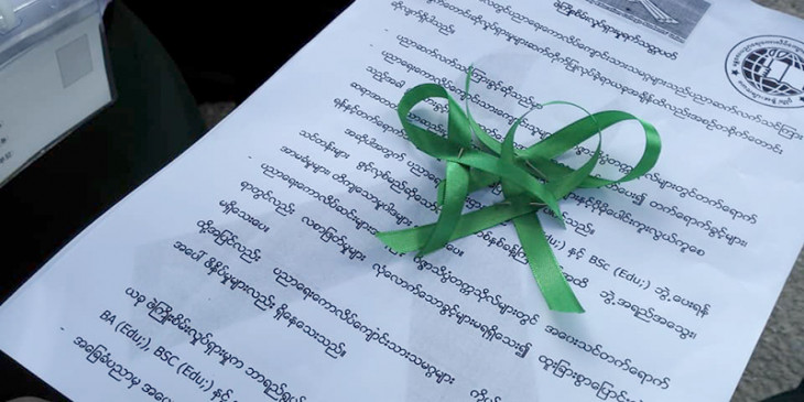 ဖဲႀကိဳးစိမ္းကမ္ပိန္း လႈပ္ရွားမႈ မႏၲေလးပညာေရးေကာလိပ္ေက်ာင္းတြင္ ျပဳလုပ္
