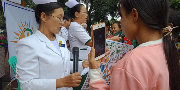 ဒီးမော့ဆိုစျေးတွင် အာဟာရဖွံ့ဖြိုးရေး လူထုအသိပညာပေး လှုပ်ရှားမှုပြုလုပ် (ဓာတ်ပုံ)
