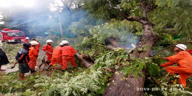 မုံရွာမီးသတ်တပ်ဖွဲ့ ဒုမြို့နယ် မီးသတ်ဦးစီးမှုး ဦးတင်ကိုကိုက "လုံးပတ် ၅ ပေ၊ အရှည် ပေ ၆၀ လောက်ရှိတဲ့ မယ်ဇလီပင် လမ်းပေါ် ကန့်လန့်လဲကျပြီး လမ်းပိတ်ခဲ့တာပါ။ ခရိုင်မီးသတ်ဦးစီးဌာနက ရှာဖွေကယ်ဆယ်ရေးအဖွဲ့ဝင်တွေ ကရိန်း၊ ချိန်းဆောတွေနဲ့ သွားရောက်ပြီး ၁ နာရီကျော်ကြာ ရှင်းလင်းပေးခဲ့ပါတယ်။ လူနှင့် နေအိမ်အဆောက်အဦတွေ ထိခိုက်ဒဏ်ရာရတာတော့ မရှိခဲ့ပါဘူး။"လို့ ပြောပါတယ်။