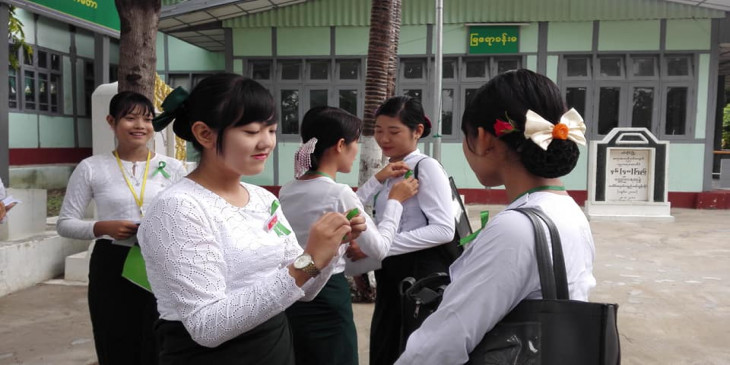 ဖဲကြိုးစိမ်းကမ်ပိန်းကို တရက်ကို ပညာရေးကောလိပ်ကျောင်းတွေ အပါအဝင် တက္ကသိုလ် ကျောင်းအသီးသီးက ကျောင်းတွေက ၂ ကျောင်းနှုန်းနဲ့ ဆက်လက်ပြီး ကမ်ပိန်းပြုလုပ်နေကြတာပါ။