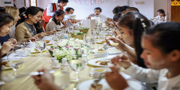 နိုင်ငံတော်၏အတိုင်ပင်ခံပုဂ္ဂိုလ် ဒေါ်အောင်ဆန်းစုကြည်ဟာ ရန်ကုန်မြို့၊ ကမာရွတ်မြို့နယ်မှာ ဧဒင်မြန်မာပရဟိတအဖွဲ့က ဖွင့်လှစ်ထားတဲ့ စောင့်ရှောက်ရေးဂေဟာကို မနေ့က သွားရောက်ပြီး လူကုန်ကူးခံရတဲ့ အမျိုးသမီးတွေကို တွေ့ဆုံအားပေးခဲ့ပါတယ်။