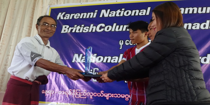 အမျိုးသားဂုဏ်သိက္ခာနဲ့ဆိုင်တဲ့ သမိုင်းဖြစ်ရပ်မှန်အပေါ် ရဲ့ရင့်စွာရပ်တည်ပေးမှုနဲ့ ဗိုလ်ချုပ်ကြေးရုပ် တည်ဆောက်မှုကို ရဲရဲဝံ့ဝံ့ ကန့်ကွက်ခဲ့တဲ့ ကရင်လူငယ်တွေကို ကနေဒါရောက် ကရင်နီအမျိုးသားတွေက National Hero Award စံပြဆုတံဆိပ် ချီးမြှင့်လိုက်ပါတယ်။