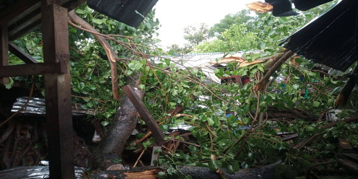 စျေးအတွင်း သစ်ကိုင်းကျိုးကျမှုကြောင့် စျေးဆိုင်ခန်း ၅ ခန်းလောက် ပျက်စီးသွားတယ်လို့ ဒေသခံတွေက ပြောပါတယ်။