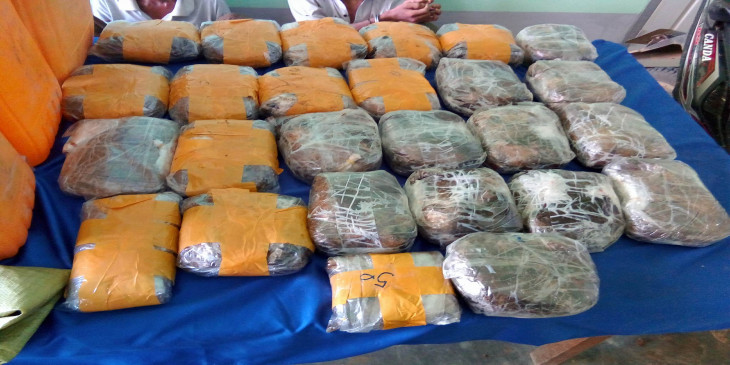 ဘိန်းမဲတွေကို အဝါရောင် ပုံး ၃ ပုံးအပြင် ဆိုင်ကယ်ဖင်ထိုင်ခုံထဲတွေမှာပါ ဝှက်ပြီး သယ်ဆောင်လာတာဖြစ်ပြီး ဘိန်းမဲအထုပ်ပေါင်း ၂၄ ထုပ် စုစုပေါင်းအလေးချိန် ၂၂ ပိဿာကျော် (၃၈၆၂၀.၄၅ ဂရမ်)၊ ကာလတန်ဖိုး ကျပ်သိန်းပေါင်း ၁၁၅၈ သိန်းကျော်ဖိုးရှိတယ်လို့ ကနဦး သတင်းတွေအရ သိရပါတယ်။