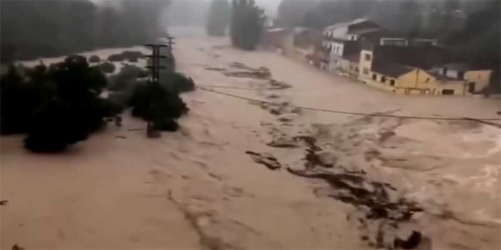 စပိန်တွင် မြစ်ကမ်းပါးကျိုးပေါက်မှုကြောင့် နေအိမ်များရေလွှမ်း (ရုပ်သံ)