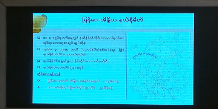 “နယ်နိမိတ်တွေကို ဗြိတိသျှကိုလိုနီလက်ထက်က စတင်ပြီး ပိုင်းခြားသတ်မှတ်ခဲ့ပါတယ်။ လွတ်လပ်ရေးရပြီးတဲ့အခါ အဲဒီနယ်နိမိတ်တွေကို အမွေခံဆက်ခံတဲ့ ဥပဒေအရ အမွေဆက်ခံခဲ့ရ ပါတယ်။ အချုပ်အခြာပိုင်နိုင်ငံ ဖြစ်လာပြီးနောက်ပိုင်းမှာ အဲဒီနယ်နိမိတ်တွေကိုပဲ ခေတ်မီနည်းနဲ့ ပိုပြီး တိကျအောင် တိုင်းတာခဲ့ပါတယ်”