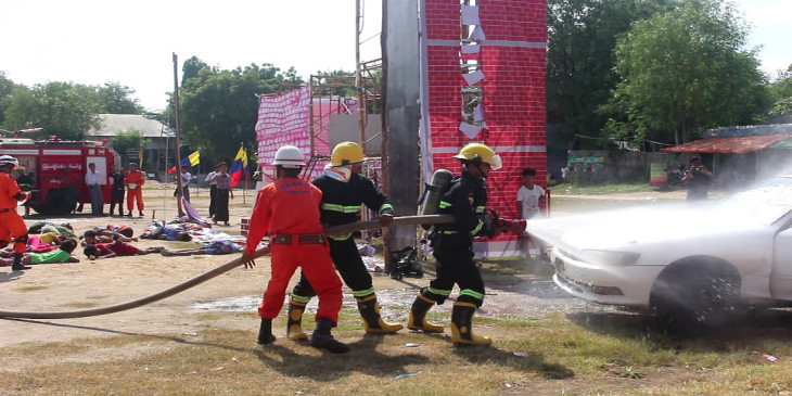 မိတ္ထီလာခရိုင်မီးသတ်ဦးစီမှူး ဦးကျော်ဆန်းက "ဝမ်းတွင်းမြို့နယ်မှာ ငလျင်ဖြစ်ပေါ်လာရင် ကူညီကယ်ဆယ်ရေးအတွက် တပ်စုအဆင့် မီသတ်တပ်ဖွဲ့ဝင် ၃၅ ဦးနဲ့ ဖွဲ့စည်းထားပါတယ်။ အချိန်နဲ့ တပြေးညီ ကူညီကယ်ဆယ်ပြီး ထိခိုက်မှု ပျက်စီးဆုံးရှုံးမှု အနည်းဆုံးဖြစ်အောင်နဲ့ ပြည်သူတွေရဲ့ အသက်တွေ အမြန်ဆုံးကယ်ဆယ်နိုင်ဖို့ အခုလို ဇာတ်တိုက်လေ့ကျင့်မှု လုပ်နေတာပါ။ ၃၅ ဦး ဖွဲ့စည်းထားရှိတာက စစ်ကိုင်းပြတ်ရွေ့ကြောပေါ်မှာ ဝမ်းတွင်းမြို့နယ်က တည်ရှိနေပါတယ်။ အခုပြုလုပ်တဲ့ ဇာတ်တိုက်လေ့ကျင့်မှူဟာ နိုင်ငံတကာ အဆင့်မီ လေ့ကျင့်လုပ်ဆောင်တာပါ" လို့ ဒီဗွီဘီ ကိုပြောပါတယ်။