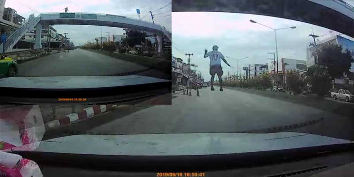 ထိုင္းရတ္သတင္းဌာနက အဆိုပါ ဗြီဒီယိုကလစ္ မူရင္းပိုင္ရွင္ Sirikorn Rodboonkerd ကို ဆက္သြယ္ေမးျမန္းရာမွာ ယာဥ္ေမာင္းသူမွာ ႏိုင္းဆူဖတ္ ဆိုသူျဖစ္ၿပီး သူဟာ ၿပီးခဲ့တဲ့ စက္တင္ဘာ ၁၆ ရက္ ညေနပိုင္းက မိသားစုနဲ႔အတူ ေဆး႐ုံသြားခ်ိန္ ေဆး႐ုံႀကီးေရွ႕ ခုံးေက်ာ္တံတားနား ေရာက္ေတာ့ ႐ုတ္တရက္လူတေယာက္ ခုန္ခ်လာတာျမင္လိုက္ရေၾကာင္း၊ ကားကို ဘရိတ္အုပ္ဖို႔ အခ်ိန္မရေတာ့တာေၾကာင့္ ဘယ္ဘက္ကို ေကြ႕ေရွာင္လိုက္တာလို႔ ေျပာပါတယ္ ။
