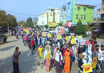 မူလက ပန္းၿခံတခုကေန ေဒသအစိုးရ႐ုံးရွိရာ ခ်ီတက္ဖို႔ စီစဥ္ထားေပမယ့္လည္း အဓိက႐ုဏ္း ႏွိမ္ႏွင္းေရး ရဲေတြက လမ္းတဝက္မွာ ၾကားျဖတ္ဟန႔္တားခဲ့ပါတယ္။