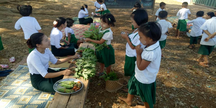 ကျောင်းသား ကျောင်းသူလေးတွေဟာ သူတို့ရောင်းမယ့် ပစ္စည်းတွေကို ယူလာကြရပြီး တချို့က ဟင်းသီးဟင်းရွက်၊ တချို့က အဝတ်အထည်၊ တချို့ကတော့ ကစားစရာပစ္စည်းတွေကို ရောင်းချကြပါတယ်။