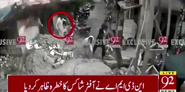 အဆောက်အဦ ပြိုကျရာကနေ လူတယောက် လွတ်မြောက်သွားတဲ့ စီစီတီဗွီကို ဒေသဆိုင်ရာ Pakistani TV သတင်းဌာနက ထုတ်လွှင့်ခဲ့ပါတယ်။
