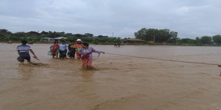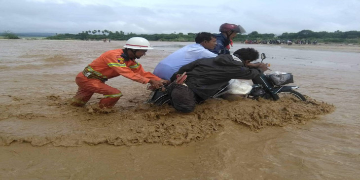 မန္တလေးတိုင်း ညောင်ဦးခရိုင်၊ ညောင်ဦးမြို့နယ်မှာ မနေ့ည ၆ နာရီခွဲလောက်က မိုးရွာသွန်းမှုကြောင့် စဉ့်ကူအုန်းမြားချောင်းမှ စဉ့်ကူ-ချောက်ကားလမ်းပေါ်ကို ချောင်းရေကြီးမှုများဖြစ်ပွားခဲ့လို့ မီးသတ်တပ်ဖွဲ့ဝင်တွေက သွားရောက်ကူညီခဲ့ကြပါတယ်။