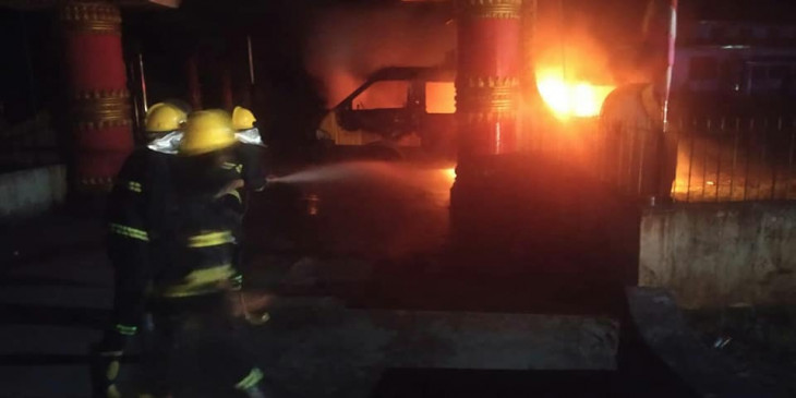 မွန်ပြည်နယ် ရေးမြို့မှ မော်လမြိုင်မြို့ကို ပြေးဆွဲနေတဲ့ ငြိမ်းချမ်း ၂ ခရီးသည်ယာဉ် ၁ စီး စက်တင်ဘာ ၂၆ ရက်နေ့ ညက ကားဝါယာရှော့ကနေ မီးလောင်ကျွမ်းခဲ့တယ်လို့ မီးသတ်ဦးစီးဌာနမှ သိရပါတယ်။