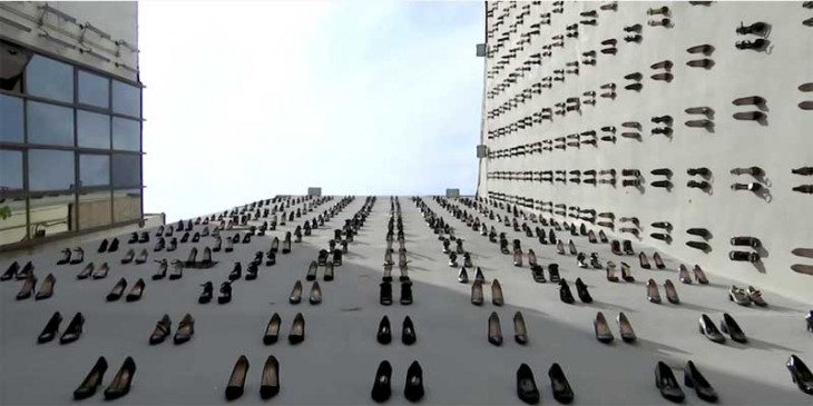 အိမ္တြင္းအၾကမ္းဖက္မႈ ဆန႔္က်င္ေရး အသိပညာေပးတဲ့အေနနဲ႔ တူရကီႏိုင္ငံ အစၥတန္ဘူၿမိဳ႕လယ္က အေဆာက္အဦတလုံးရဲ႕ နံရံေတြေပၚမွာ ေဒါက္ျမင့္ဖိနပ္ အရံ ၄၄၀ ကို ခ်ိတ္ဆြဲထားပါတယ္။