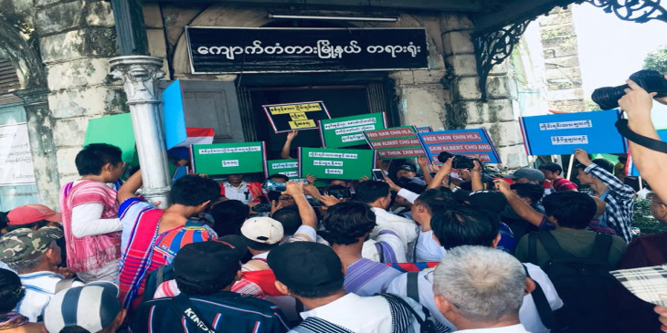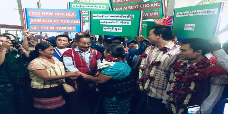 ေနာ္အုန္းလွႏွင့္ လူငယ္၂ ဦးကို ႐ုံးထုတ္စစ္ေဆးစဥ္ ရာႏွင့္ခ်ီသည့္ ကရင္လူထုသြားေရာက္ဝန္းရံ