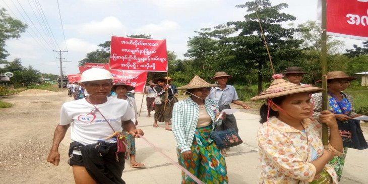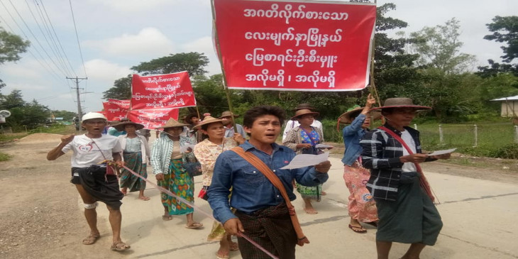 ဧရာဝတီတိုင်းဒေသကြီးလွှတ်တော် လေးမျက်နှာမြို့နယ် အမှတ် (၂) လွှတ်တော် ကိုယ်စားလှယ်နဲ့ မြို့နယ်မြေစာရင်းဦးစီးဌာနကို တောင်သူတွေ တရားစွဲဆိုခံနေရတာနဲ့ ပတ်သက်ပြီး စက်တင်ဘာလ ၂၇ ရက်နေ့က လေးမျက်နှာမြို့မှာ တောင်သူ ၁၀၀ နီးပါးက ဆန္ဒထုတ်ဖော်ခဲ့ကြပါတယ်။